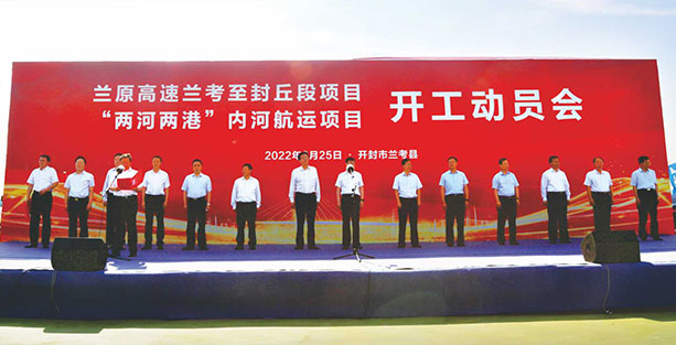 2022年6月25日上午9點,蘭原高速蘭考至封丘段、“兩河兩港”內河航運等7個基礎設施項目集中開工動員會主會場在蘭原高速蘭考至封丘段項目建設工程施工現場拉開帷幕。