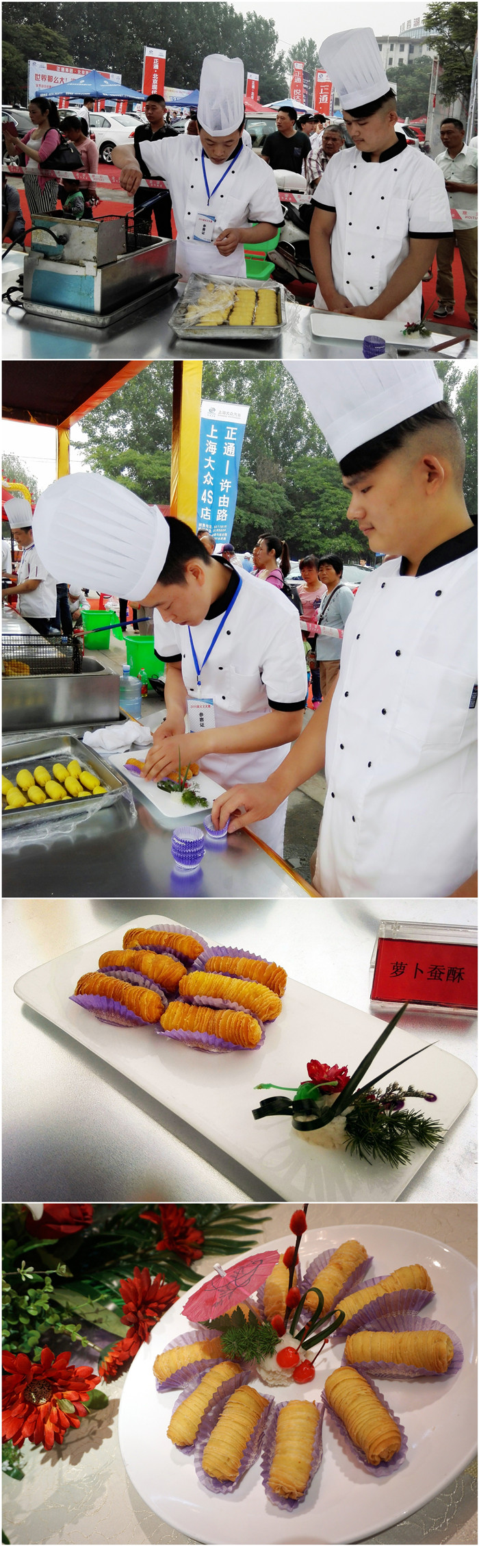 2015年5月29日,由許昌日報社主辦,河南省體育彩票管理中心許昌分中心協辦的“2015許昌面點王”大賽在許昌體育場隆重舉行,市區20多家知名酒店派出了多名面點師參賽。參賽選手個個技藝精湛,通過炸、煮、蒸、烤的方式,烹制出了多道面點。最終我酒店參賽選手田大祺制作的蘿卜蠶酥,以其選料的養生化、出品的精細化、口感的酥潤化在眾多作品中脫穎而出,獲得“2015許昌面點王”金獎。目前鴻寶大酒店二樓粵川美食軒餐廳正在熱推此作品。