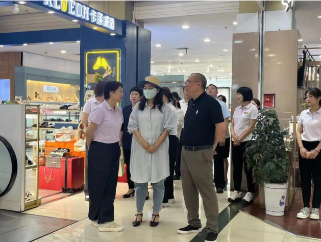 調研伊始,曉曦總一行首先實地考察了鴻寶百貨大商新瑪特店的經營狀況,并與許昌大商新瑪特總經理牛曉華溝通交流了百貨經營的基本情況。隨后,曉曦總一行前往鴻寶酒店,視察了酒店大堂展品、會議中心服務接待標準、客房升級成果,以及十七樓會所和設備設施維護保養情況。