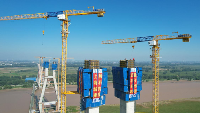 東壩頭黃河大橋88#墩主塔提前封頂